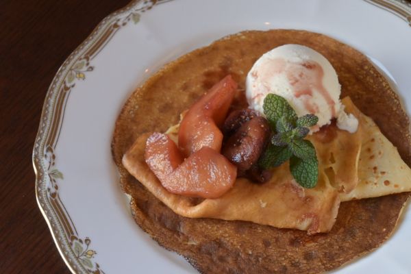 「日替わりスイーツ」にお皿で食べるタイプのクレープが加わりました。明日の19日は「イチジクとリンゴの赤ワイン煮とバニラアイスのクレープ」が登場します。